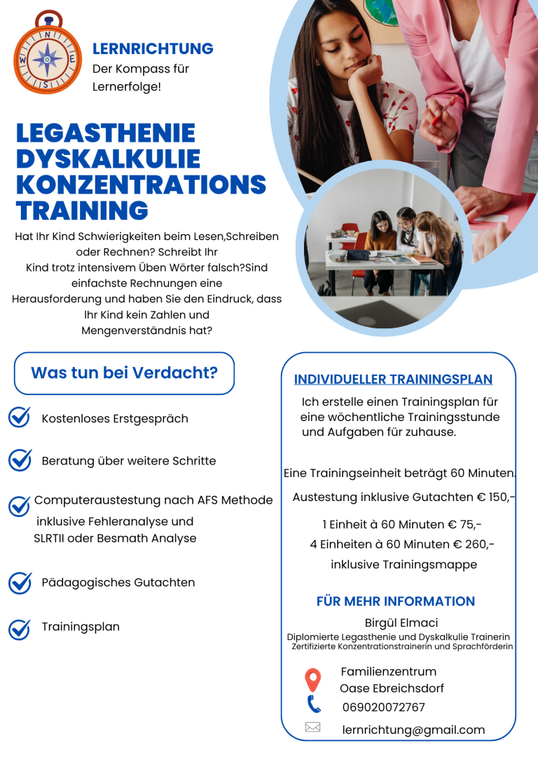 Legasthenie- und Dyskalkulietrainerin, Sprachförder-Trainerin, Konzentrationstrainerin